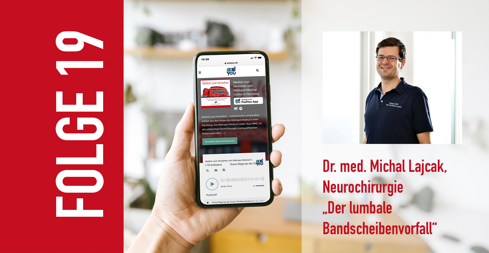 In der aktuellen Folge unseres Podcasts „Medizin zum Verstehen“ sprechen wir mit dem erfahrenen Neurochirurgen Dr. Michal Lajcak über ein häufiges, aber oft missverstandenes Krankheitsbild: den lumbalen Bandscheibenvorfall.